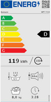 | Gewichteter Energieverbrauch pro 160 Trocknungszyklen im Programm Baumwolle | 119 kWh |