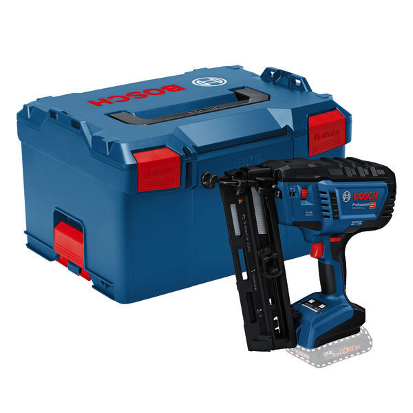 Akku-Holznagler GNH 18V-64-2, Als professioneller Handwerker willst du Nägel effizient und ohne zu große Belastung für Hand und Arm eintreiben. Wir haben den leistungsstarken, bürstenlosen GNH 18V-64-2 Professional mit einem sehr geringen Rückschlag entwickelt, der dein Handgelenk schont. Außerdem haben wir darauf geachtet, dass du das Werkzeug einhändig einschalten und bedienen kannst. Dieses Werkzeug bietet die volle Leistung eines Druckluftnaglers, aber frei von Kompressor, Gaskartusche oder Kabel. Ideal für die Montage von Fenster- und Türrahmen, Zierleisten, Balustern an Treppengeländern, Decken- und Bodenpaneelen mit Nut- und Federverbindung (verdeckte Nagelung), Täfelungen und Sockelleisten. Kompatibel mit dem Bosch Professional 18V System und mit der markenübergreifenden AMPShare Akku-Allianz. Mit einhändig bedienbarem Ein-/Aus-Schalter, HMI mit Service-Warnung, Einzelauslösung, benutzerfreundlicher stufenloser Tiefenverstellung, Trockenschuss-Sperre, Doppel-LED, großem Sichtbereich an der Kontaktspitze, werkzeuglosem Entfernen verklemmter Nägel. Geeignet für folgende Nägel: 32-64 mm, 16 ga (1,6 mm) und 20° Magazinwinkel. L-BOXX 238 (1 600 A01 2G2)