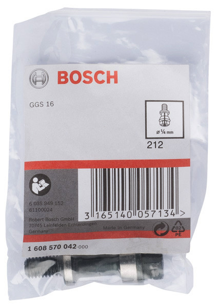 | Kurzbeschreibung | Spannzange mit Spannmutter, 1/4-Zoll, f. Bosch-Geradschleifer, passend zu GGS 16 |
