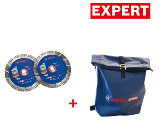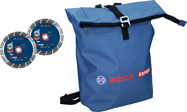 Die EXPERT MultiMaterial Diamant-TS hält bis zu 4x länger als die herkömmlichen Bosch MultiMaterial Diamant-TSDas ideale Zubehör für vielbeschäftigte Bauprofis, die Beton, Ziegel, Dachziegel und Stahlbeton schneiden müssenDas Paket ist inkl. Rucksack mit BOSCH EXPERT Branding
