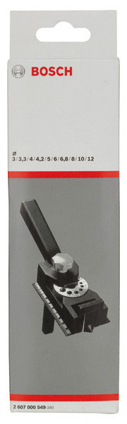 Die Dübelbohrlehre bietet eine einfache und präzise Führung für mit Holz-, Stahl- und Mehrzweckbohrern gebohrte Dübellöcher. Sie ist geeignet für Bohrerdurchmesser von 3, 3,3, 4, 4,2, 5, 6, 6,8, 8, 10 und 12 mm. Die Lehre besteht aus Kunststoff und beinhaltet eine Parallelführung.