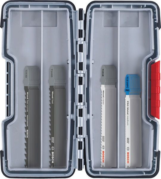 Das 40-tlg. Wood and Metal Stichsägeblatt-Set, Toughbox, ist essentiell für Holz- und Metallarbeiten. Es enthält Blätter, die speziell für gerade und Kurvenschnitte konzipiert ist. Sie machen saubere und schnelle Schnitte in Weichholz, nicht-abrasive Holzwerkstoffe und perforiertes Metallblech.