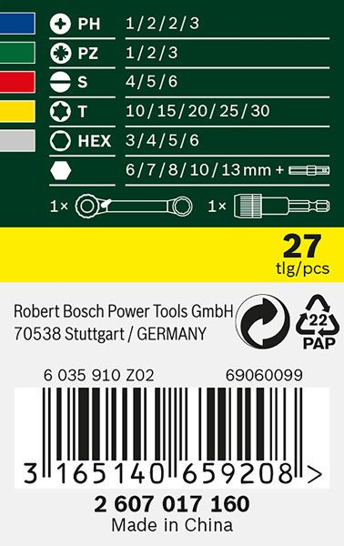 | Kurzbeschreibung | Schrauberbit- und Ratschen-Set, 27-teilig |