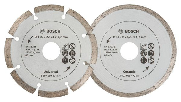 | Kurzbeschreibung | Diamanttrennscheibe für Fliesen und Baumaterial, Durchmesser: 115 mm, 2er-Pack |