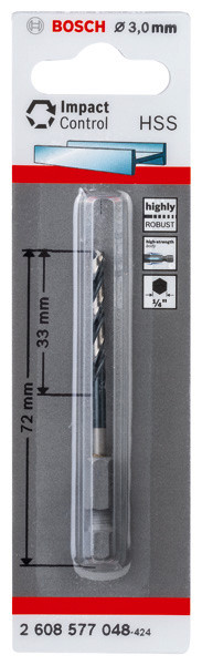 | Kurzbeschreibung | HSS Spiralbohrer mit Sechskantschaft 3,0 mm |