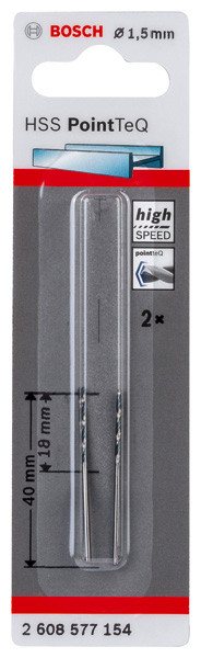 | Kurzbeschreibung | Metallspiralbohrer HSS PointTeQ, DIN 338, 1,5 mm, 2er-Pack |