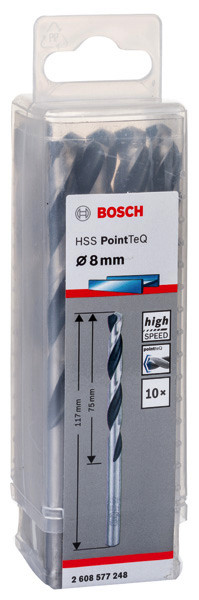 | Kurzbeschreibung | Metallspiralbohrer HSS PointTeQ, DIN 338, 8,0 mm, 10er-Pack |