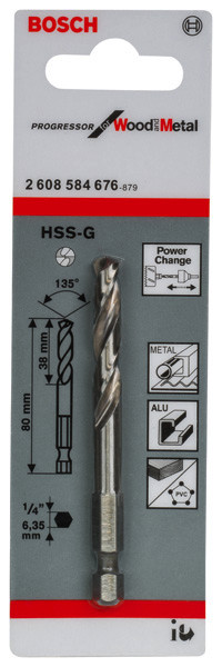 mit 1/4"-Sechskantschaft, 135° Spitzenwinkel und Kreuzanschliff