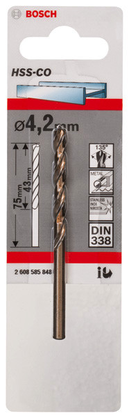 | Kurzbeschreibung | Metallbohrer HSS-Co, DIN 338, 4,2 x 43 x 75 mm, 1er-Pack |