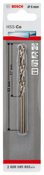 | Kurzbeschreibung | Metallbohrer HSS-Co, DIN 338, 6 x 57 x 93 mm, 1er-Pack |