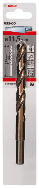 | Kurzbeschreibung | Metallbohrer HSS-Co, DIN 338, 11,5 x 94 x 142 mm, 1er-Pack |