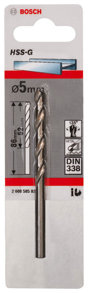 | Kurzbeschreibung | Metallbohrer HSS-G, DIN 338, 5 x 52 x 86 mm, 1er-Pack |