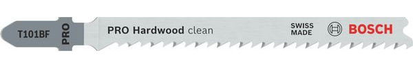 Herausragende Lebensdauer in Hartholz! Bi-Metall Blatt: Kombiniert harte Zähne mit flexiblem Blattkörper Bist du Tischler und auf der Suche nach einem Stichsägeblatt zum Schneiden von Hartholz? Ein Stichsägeblatt, das gerade, saubere Schnitte liefert? Mit dem PRO Hardwood clean T101BF kannst du diese Arbeit erledigen. Das PRO Hardwood clean T101BF Stichsägeblatt wurde aus BI-Metall hergestellt: Es verfügt über eine Zahnleiste aus Schnellarbeitsstahl (HSS), die mit einem Körper aus Kohlenstoffstahl (HCS) verbunden ist, um sicherzustellen, dass du Hartholz problemlos bearbeiten kannst. Das Blatt hat eine konische Form und eine feine Zahnteilung für saubere Schnitte, ohne hängen zu bleiben. Schneide damit massives Hartholz mit einer Dicke zwischen 3 und 30 mm.