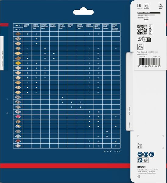 Lange Lebensdauer in Hochdruck-Schichtpressstoffplatten! Zusätzliche Beschichtung für mehr Leistung und längere Haltbarkeit Hochdruck-Schichtpressstoff wird aufgrund seiner Langlebigkeit häufig in der Bau- und Möbeltischlerei verwendet. Doch die Oberflächen können einem Kreissägeblatt sehr zusetzen. Mit unserem Kreissägeblatt EXPERT High Pressure Laminate lassen sich Hochdruck-Schichtpressstoffplatten problemlos schneiden ? effektiv und immer wieder. Die feinen Zähne des EXPERT High Pressure Laminate sind scharf geschliffen und wurden mit der Bosch Carbide Technology hergestellt. Dadurch ist es sehr langlebig und ermöglicht saubere, präzise Schnitte. Zum Schutz vor Wärmestau und Korrosion haben wir es mit einer zusätzlichen Beschichtung versehen. Außergewöhnlich robust dank Bosch Carbide Technology
