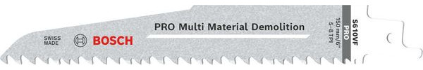 Herausragende Lebensdauer in Holz mit integrierten Metallelementen! Bi-Metall Blatt: Kombiniert harte Zähne mit flexiblem Blattkörper Säbelsägen sind ausgezeichnete Werkzeuge für solche Aufgaben. Das PRO Multi Material Demolition S610VF Säbelsägeblatt unterstützt dich bei der Bewältigung selbst anspruchsvollster Abbrucharbeiten. Die BI-Metall-Konstruktion aus einem stabilen HCS-Körper mit gehärteten HSS-Zähnen machen das PRO Multi Material Demolition S610VF Säbelsägeblatt sehr robust. Die fortschrittliche Bosch Vario-Zahnform sorgt für einen effizienteren Schneidvorgang, für Geschwindigkeit und Langlebigkeit.