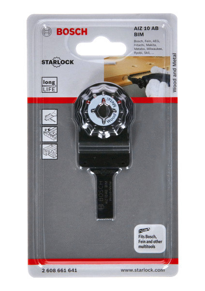 Das Tauchsägeblatt Starlock AIZ 10 AB ermöglicht Feinschnitte in Holz und ungehärtetes Metall. Sein schmales Blatt von 10 mm ermöglicht Filigranarbeit. Das robuste Aufnahmesystem des Blatts reduziert Lateralschwingung und ermöglicht mittels direkter Kraftübertragung haarfeine Schnitte. Es wird verwendet für Filigranarbeiten an Nichteisenprofilen und Tauchschnitte in Gipskartonplatten. Dieses Blatt sägt Holz und ungehärtetes Metall, weiche Kunststoffe und Paneele mit Kunststofflaminierung. Beim Schneiden von ungehärtetem Metall und abrasivem Material ist die Bimetallverbindung aus Blatt aus HCS-Stahl (Stahl mit hohem Kohlenstoffgehalt) und Zähnen aus HSS-Stahl (Schnellarbeitsstahl) verschleiß- und hitzeresistent und gewährt dem Blatt eine hohe Lebensdauer. Das Starlock-Aufnahmesystem ermöglicht ?einen schnellen Blattwechsel ohne Blattberührung in drei Sekunden.? Das Aufnahmesystem ermöglicht durch seine dreidimensionale enge Passung maximale Kraftübertragung zwischen Maschine und Zubehör.
