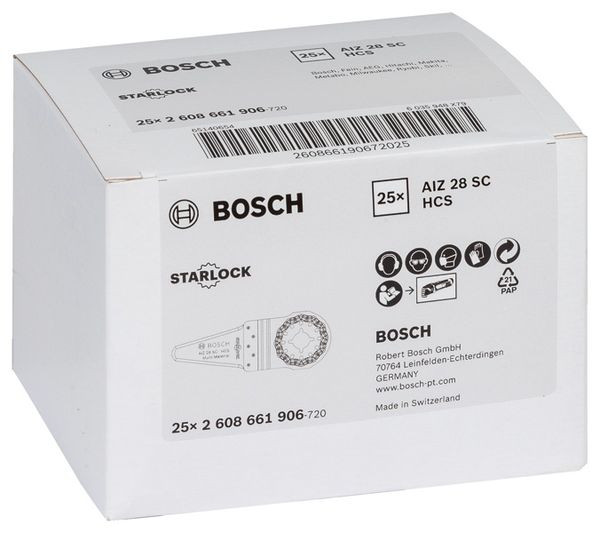Der Universalfugenschneider AIZ 28 SC ermöglicht zuverlässig und einfach Schnitte in verschiedene weiche Materialien. Das scharfe Blatt ist ideal zum Durchschneiden von biegsamem Material geeignet. Die rasiermesserähnliche und durchgehende beidseitige Schneidekante und die geschliffene Spitze ermöglichen müheloses Durchstoßen und Durchneiden von biegsamem Material. Der biegesteife Klingenkörper aus HCS-Stahl (Stahl mit hohem Kohlenstoffgehalt) schneidet leicht weiches Material, da sich die breite Klinge nicht verbiegt oder mitten im Schnitt verwindet. Dieser Schneider ist ausgelegt für weiches Fugenmaterial, Spachtelmaterial wie Dichtmasse, Dämmmaterial und weiches Fugenmaterial. Das Starlock-Aufnahmesystem ermöglicht ?einen schnellen Blattwechsel ohne Blattberührung in drei Sekunden.? Das Starlock-Aufnahmesystem ermöglicht durch seine dreidimensionale enge Passung maximale Kraftübertragung zwischen Maschine und Zubehör.