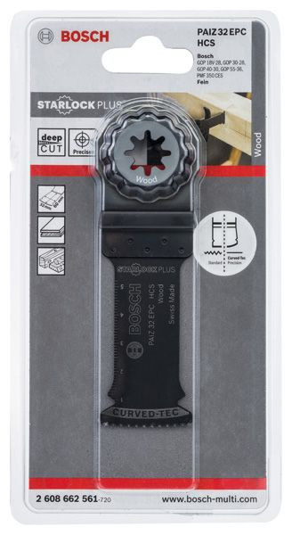 Das Tauchsägeblatt Starlock PAIZ 32 EPC ermöglicht tiefe Schnitte in Holz.? Seine Länge von 60 mm erhöht die Reichweite für ausgedehnte Schnitte. Die direkte Kraftübertragung und das robuste Starlock-Aufnahmesystem reduzieren Lateralschwingung und ermöglichen größere geführte Schnitte. Wegen dieses Merkmals ist dieses Produkt ideal geeignet für Tauchschnitte in Weichholz, das Sägen von Aussparungen in Möbelbauteile, das bündige Ablängen von Holzbauteilen und das Durchtrennen von massivem Weichholz. Die abgerundete Blattspitze (Curved-Tec) erleichtert das Anfertigen präziser und glatter Tauchschnitte Das System Starlock Plus ermöglicht sehr schnelle, tiefe und vielfältige Tauchschnitte. Zusätzlich ermöglicht das Starlock-Aufnahmesystem schnellen Blattwechsel ?in drei Sekunden ohne Blattberührung?. Das spezielle Starlock-Aufnahmesystem ermöglicht durch seine dreidimensionale enge Passung maximale Kraftübertragung zwischen Maschine und Zubehör.