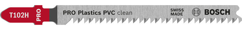Präzises Schneiden von Kunststoffen! Konisch geschliffener Blattkörper für feine, saubere Schnitte Das Schneiden von thermoplastischem Material verlangt nach einem scharfen und effizienten Stichsägeblatt, das die Hitze reduziert und das Schmelzen des Materials verhindert. Wir haben das PRO Plastics PVC clean T102H entwickelt, damit du saubere Schnitte in nicht abrasiven thermoplastischen Platten, Rohren und Profilen ausführen kannst. Das PRO Plastics PVC clean T102H Stichsägeblatt ist eine gute Wahl für Handwerker, die thermoplastische Materialien schneiden müssen. Es wurde aus Kohlenstoffstahl (HCS) hergestellt und mit einem konischen Körper sowie fein abgestuften, geschliffenen Zähnen versehen, damit du saubere Schnitte ohne kontinuierliche Spanbildung oder Schmelzmaterial erhältst. Schneide damit Platten, Rohre und Profile aus PVC (Polyvinylchlorid) mit einer Dicke von bis zu 30 mm.