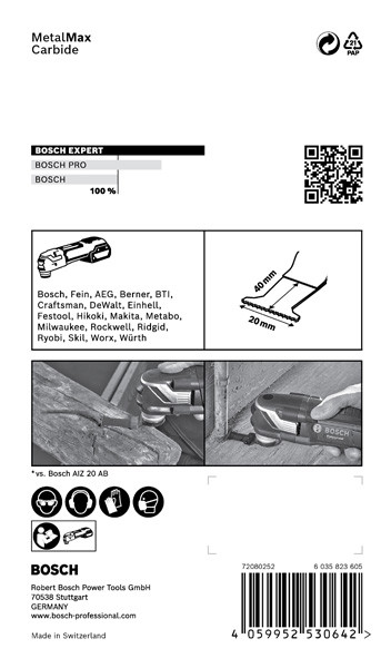 | Kurzbeschreibung | EXPERT MetalMax AIZ 20 AIT Tauchsägeblatt für Multifunktionswerkezeuge, 40x20 mm |