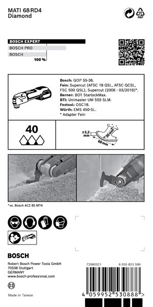 | Kurzbeschreibung | EXPERT MATI 68 RD4 Eckblatt für Multifunktionswerkzeuge, 68x30 mm |