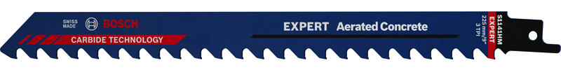 Herausragende Lebensdauer in Porenbeton! Dickeres Blatt für zusätzliche Robustheit und Stabilität Porenbetonblöcke sind eines der häufigsten Materialien im modernen Wohnungsbau. Die Fähigkeit, diese großen Blöcke schnell und genau zuzuschneiden, bedeutet für Handwerker einen enormen Effizienzgewinn. Porenbeton ist allerdings stark abrasiv. Das EXPERT Aerated Concrete kann dieses Problem dank des fortschrittlichen Designs der Carbide-Zähne angehen. Bevor es Carbide-Säbelsägeblätter gab, konnte man sich nicht vorstellen, Porenbetonblöcke einfach und bequem zu schneiden. Das Bosch EXPERT Aerated Concrete-Säbelsägeblatt läutet nun eine neue Ära ein. Überragende Lebensdauer dank Bosch Carbide Technology