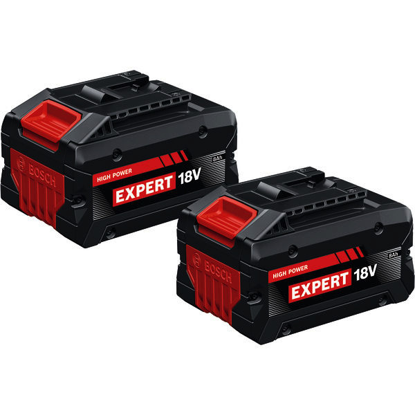 Akkupack 2x EXBA18V-80, Der leistungsstarke Expert Akku EXBA18V-80 bietet bis zu 120 % mehr Laufzeit und sorgt so für außergewöhnlich kontinuierliches Arbeiten auch bei harten Anwendungen (im Vergleich zum Professional GBA 18V 4.0Ah. interne Testlabordaten. Schleifen auf Baustahl mit GWS 18V-15 S + Fächerschleifscheibe, 30-Sekunden-Intervalle mit 5 Sekunden Pausen). Er verwendet die fortschrittliche „Tabless“-Zelltechnologie und bietet eine maximale Leistung von bis zu 2400 W (interne Testlabordaten. sofortige maximale Leistung, voll aufgeladen, neue Batterie). Konventionelle Akkus besitzen „Multi-Tab“-Zellen, die nur zwei Tabs zur Stromleitung nutzen. Dies stellt einen Engpass dar, der zum Widerstand des Akkus beiträgt. Die „Tabless“-Zelltechnologie beseitigt diesen Engpass. Statt nur zwei Strompfaden bietet sie unzählige parallele Strompfade. Das Ergebnis: geringerer Widerstand, weniger Wärme, extreme Laufzeit und maximale Leistung. Mit seinem verstärkten robusten Gehäuse, dem hervorragenden Wärmemanagement mit COOLPACK 2.0 und der „Tabless“-Zelltechnologie bietet der EXBA18V-80 eine lange Lebensdauer und ist damit ideal für Profis, die auf Langlebigkeit und Leistung setzen. Der EXBA18V-80 verfügt über einen erweiterten Ladetemperaturbereich von -10 °C bis +55 °C Akkutemperatur, wenn er mit EXAL18V2-320 oder EXAL18V-160 verwendet wird. Er wird mit einer 5-LED-Anzeige geliefert, die den Ladezustand sowie die verbleibende Kapazität und die Erkennung eines Defektrisikos anzeigt. Kompatibel mit dem Bosch Professional 18V System und der markenübergreifenden AMPShare Akku-Allianz. Mit dem EXAL18V2-320 oder EXAL18V-160 lässt er sich in nur 39 Minuten vollständig aufladen und wiegt nur 1,04 kg. Karton