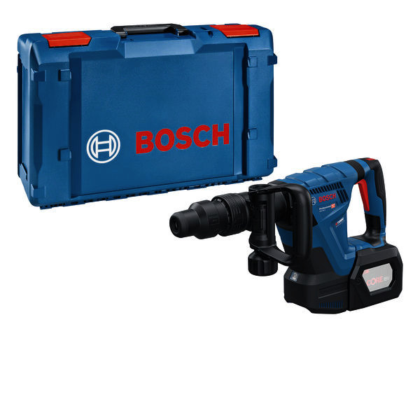 Akku-Schlaghammer mit SDS max GSH 18V-5, Die Arbeit mit großen Abbruchwerkzeugen ist schwer, insbesondere bei Arbeiten über Kopf oder in engen Räumen. Deshalb haben wir das GSH 18V-5 Professional entwickelt. Er bietet reduzierte Ermüdung und kabellose Freiheit mit einer kabelgebundenen Leistung von 8,5 J dank Brushless-Technologie. Dieses leichte und kompakte Gerät ist aufgrund seines effizienten Leistungsgewichts, des hochoptimierten Antriebsstrangs und des leistungsstarken Schlagwerks ideal für alle Arbeitspositionen. Darüber hinaus hast du mehr Kontrolle mit dem Soft-Start-Modus / Adaptive Speed Control (ASC) für präzises Meißeln und der Verriegelungstaste für kontinuierliches Arbeiten. Der GSH 18V-5 Professional eignet sich für Meißel-, Abbruch- oder Korrekturarbeiten, zum Entfernen von Fliesen, für Durchbrüche und zum Herstellen von Rinnen in Beton, Mauerwerk und Ziegeln. Es ist kompatibel mit dem Bosch Professional 18V System und mit der markenübergreifenden AMPShare Akku-Allianz. (Für maximale Leistung: ProCORE18V = 5,5 Ah). Das Gerät hat außerdem zwei verschiedene Arbeitsmodi über eine einfache Benutzeroberfläche, Vario-Lock und eine LED-Arbeitsleuchte. 1 x XL-BOXX (1 605 438 1L9)