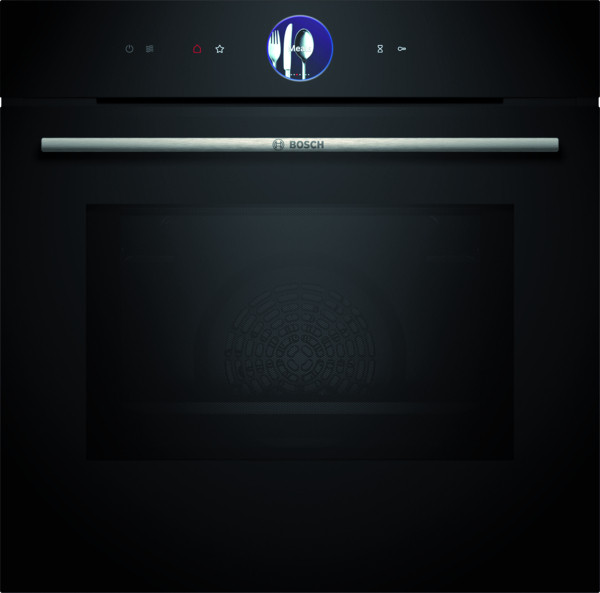 digitaler Bedienring mit TFT Touchdisplay Plus, Temperaturvorschlag Ist-Temperaturkontrolle, Elektronikuhr, Bosch Assist (Gericht auswählen und Gewicht einstellen), Backofenassistent mit Sprachsteuerung (über Amazon Alexa), Elektronik-Uhr, Restwärmeanzeige, Home Connect (WLAN), weitere Beheizungsarten: Ober-/Unterhitze sanft, Ober-/Unterhitze + Mikrowelle, separate Unterhitze, 4D-Heißluft, Heißluft sanft, 4D Heißluft + Mikrowelle, Umluftgrill, Umluftgrillen + Mikrowelle, Großflächengrill, Großflächengrill + Mikrowelle, Kleinflächengrill, Kleinflächengrill + Mikrowelle, Pizzastufe, Air Fry, Sanftgaren, Vorwärmen, Warmhalten, Auftauen, Mikrowelle (Inverter-Technologie) mit 5 Leistungsstufen; Crisp Finish, Schnellaufheizung, Kühlgebläse, LED-Innenbeleuchtung (abschaltbar), Email anthrazit, Eco Clean Direct Rückwand, Reinigungsunterstützung (Programm), Kindersicherung, Sicherheitsabschaltung, Klapptür mit SoftClose und SoftOpen, Zubehör: 1 Backblech, 1 Kombirost und 1 Universalpfanne, Made in Germany