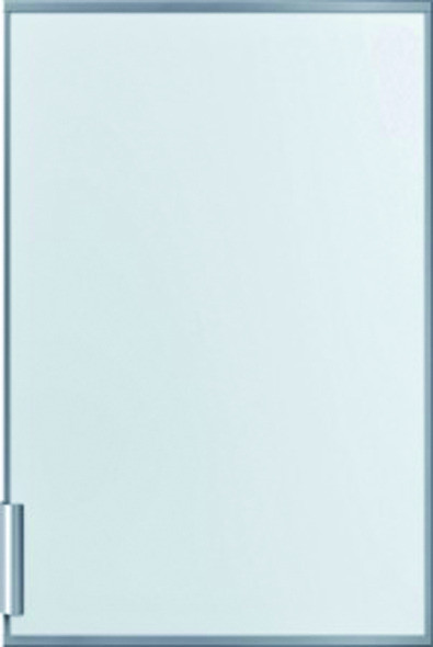 weiße Front mit Alurahmen und Alugriff, Montage wie handelsübliche Möbelfront, Maße Dekorplatte, Dekorplattenstärke max. 4 mm, passend für KIR21, KIL22