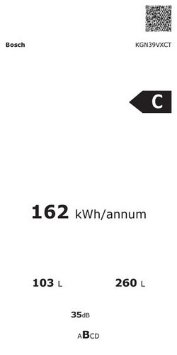 | Durchschnittlicher Energieverbrauch in kWh/Jahr | 162 kWh |