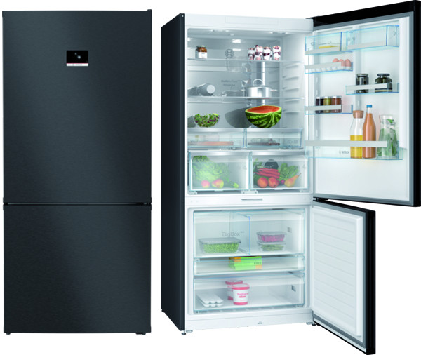 Leistung und Verbrauch Energieeffizienzklasse: B Energieverbrauch / Jahr: 172 kWh/a Geräuscheffizienzklasse / Geräusch-Wert: B / 35 dB Nutzinhalt gesamt: 621 l Design Türen Gebürsteter schwarzer Stahl Anti Fingerprint, Seitenwände Anthrazit Vertikal integrierter Griff LED Beleuchtung Komfort und Sicherheit Total No Frost - nie wieder abtauen und keine Wassertropfen mehr an der Rückwand des Kühlschranks Super-Taste: Super Kühlen Super Gefrieren: ja TouchControl - Elektronische Temperaturregelung digital ablesbar Optisches und akustisches Warnsystem bei geöffneter Tür Urlaubsschaltung, Energie-Sparschaltung, Kindersicherung Kühlteil Nutzinhalt Kühlfächer: 419 l Multi Airflow-System für optimale und gleichmäßige Kälteverteilung AirFreshfilter 3 Abstellflächen aus Sicherheitsglas, davon 3 Glasplatten ausziehbar 6 Türabsteller, davon 1 Flaschenabsteller Auszugs-Schubfach mit Frühstücksboxen 3 x Eierablage, 2 x Eiswürfelschale mit Deckel, 1 x Flaschenkamm in Türabsteller Gefrierteil Nutzinhalt Tiefkühlfächer: 202 l Gefriervermögen in 24 Std.: 10 kg Lagerzeit bei Störung : 16 h 3 transparente Gefriergut-Schubladen Frischhaltesystem VitaFresh plus: hält frische Lebensmittel bis zu zweimal länger frisch Länderspezifische Optionen Gerätemaße ( H x B x T): 186.0 cm x 86.0 cm x 81.0 cm Türanschlag rechts, wechselbar Höhenverstellbare Füße vorne, Rollen hinten Klimaklasse: SN-T 220 - 240 V Auf Basis der Ergebnisse der Normprüfung über 24 Std. Tatsächlicher Verbrauch abhängig von Nutzung/Standort des Geräts.