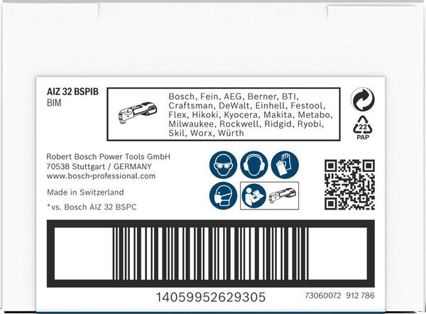 Herausragende Lebensdauer in Hartholz und abrasiven Holzwerkstoffen! Bi-Metall Blatt: Kombiniert harte Zähne mit flexiblem Blattkörper Als ideale Problemlösung für Profis kombiniert das PRO AIZ 32 BSPIB eine hervorragende Fähigkeit für Tauchschnitte mit einer Zähigkeit, die sicherstellt, dass auch Hartholz und Holzverbundwerkstoffe bearbeitet werden können.