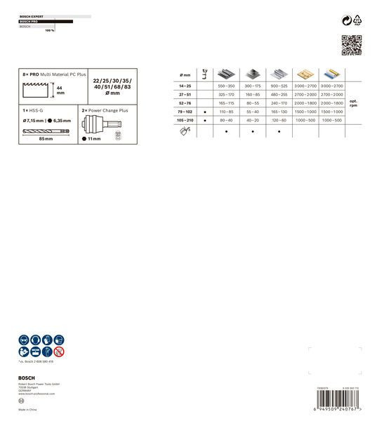 | Kurzbeschreibung | PRO Multi Material PC Plus Lochsägen-Set, 22-83 mm, 11-tlg. |
