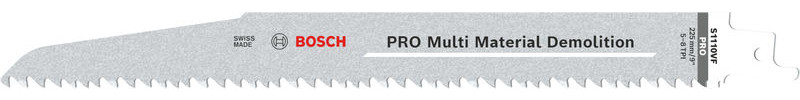 Herausragende Lebensdauer in Holz mit integrierten Metallelementen! Bi-Metall Blatt: Kombiniert harte Zähne mit flexiblem Blattkörper Säbelsägen sind ausgezeichnete Werkzeuge für solche Aufgaben. Das PRO Multi Material Demolition S1110VF Säbelsägeblatt unterstützt dich bei der Bewältigung selbst anspruchsvollster Abbrucharbeiten. Die Bi-Metall-Konstruktion aus einem stabilen HCS-Körper mit gehärteten HSS-Zähnen machen das PRO Multi Material Demolition S1110VF Säbelsägeblatt sehr robust. Die fortschrittliche Bosch Vario-Zahnform sorgt für einen effizienteren Schneidvorgang, für Geschwindigkeit und Langlebigkeit.