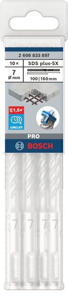 | Kurzbeschreibung | PRO SDS plus-5X Hammerbohrer, 7 x 100 x 160 mm, 10-tlg. |