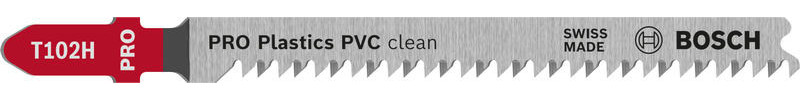 Präzises Schneiden von Kunststoffen! Konisch geschliffener Blattkörper für feine, saubere Schnitte Zum Schneiden von thermoplastischem Material ist ein scharfes und effizientes Stichsägeblatt erforderlich, das die Wärmeentwicklung reduziert und ein Schmelzen des Materials verhindert. Wir haben das PRO Plastics PVC and PMMA clean T102H entwickelt, um saubere Schnitte in thermoplastischen Platten, Rohren und Profilen zu ermöglichen.