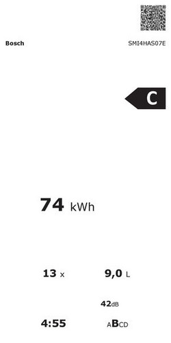 | Energieverbrauch im eco-Programm pro 100 Betriebszyklen | 74 kWh |