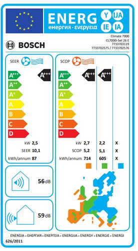 | Kurzbeschreibung | Bosch Split-Klimageräte Paket bestehend aus 2 Komponenten für CL7000i. Split-Klimagerät CL7000i-Set 26 E Außen- und Inneneinheit, 2,5 kW, A+++ |