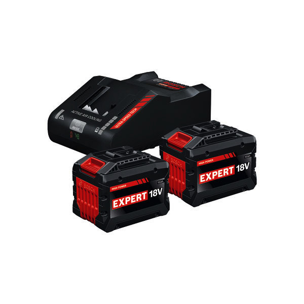Batterie/Ladegerät Set 2x EXBA18V-150 + EXAL18V-160, Der leistungsstarke Akku EXBA18V-150 liefert bis zu 280 % mehr Laufzeit für hervorragendes kontinuierliches Arbeiten selbst in harten Anwendungen (verglichen mit Professional GBA 18V 4.0Ah, interner Labortest. Blasbetrieb bei minimaler Leistung mit GBL 18V-750, neutraler Luftstrom, ohne Pausen). Er verwendet die neueste 5,0-Ah-Zelle für eine maximale Leistung von bis zu 2400 W (interner Labortest. sofortige Maximalleistung, voll geladener, neuer Akku). Mit seinem verstärkten, robusten Gehäuse und dem ausgezeichneten Wärmemanagement durch COOLPACK 2.0 bietet der EXBA18V-150 eine lange Lebensdauer und ist deshalb ideal für Profis, die Langlebigkeit und hohe Leistung benötigen. Das EXAL18V-160 lädt einen EXBA18V-150-Akku in nur 60 Minuten mit einem Ladestrom von 16 A vollständig auf, verfügt über Intelligent Active Air Cooling 2.0 und FlexTemp Charging für eine effiziente Kühlung und einen größeren Temperaturbereich von -10 °C bis +55 °C. Dieses Ladegerät verfügt über drei Modi, Standard, Power Boost für schnellstes Laden und Long Life für ein schonenderes Laden, um die Lebensdauer des Akkus zu verlängern. Der EXBA18V-150 besitzt eine 5-LED-Anzeige für den Ladezustand mit Restkapazität und Defektrisikoerkennung. Das ultraschnelle Ladegerät für Hochleistungsanwendungen mit 5 LEDs, die den genauen Ladezustand deines Akkus angeben. Dieses Ladegerät verfügt über drei Modi: Standard, Power Boost für schnellstes Laden und Long Life für ein schonenderes Laden, um die Lebensdauer des Akkus zu verlängern. Beide sind mit dem Bosch Professional 18V System und mit der markenübergreifenden AMPShare Akkuallianz kompatibel. Der EXBA18V-150 kann mit dem EXAL18V-160 in lediglich 60 Minuten vollgeladen werden und wiegt nur 1,52 kg. Karton