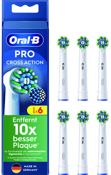 einzigartige Borsten im 16° Winkel für eine überlegene Zahnreinigung, mit neuen X-förmigen Borsten entwickelt, die nun auch die Stellen reinigen, die normale Borsten nicht erreichen können, grüne Indikator-Borsten färben sich mit der Zeit je nach individueller Nutzung gelb und zeigen damit den optimalen Zeitpunkt zum Wechseln an, kompatibel mit allen Oral-B Handstücken, außer Pulsonic & iO