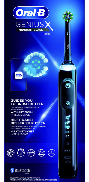 mit künstlicher Intelligenz, integrierte Bewegungssensoren erkennen Putztechnik und sorgen so für beste Ergebnisse, unterstützt mit individuellem Coaching, um alle Bereiche gleichmäßig mit dem richtigen Druck und in der richtigen Zeit zu putzen, 6 Reinigungs-Modi: Tägliche Reinigung, Pro-Clean, Sensitive, Aufhellen, Zahnfleischschutz, Zungenreinigung; 2 Min.Timer, visuelle Andruckkontrolle, lässt sich per Bluetooth-Technologie mit dem Smartphone verbinden und erlaubt zusammen mit der Oral-B App ein komplett personalisiertes Mundepflegeprogramm, inkl. 1 Aufsteckbürste mit INDICATOR-Borsten; Ladestation
