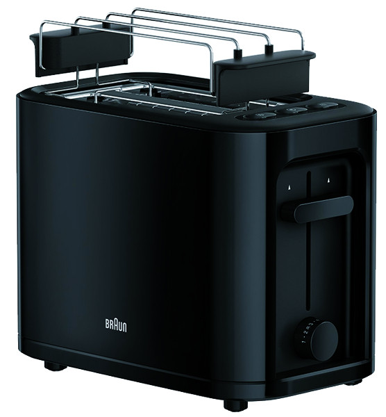 7 variabel einstellbare Bräunungsgrade, Aufwärmfunktion, Auftaufunktion, Stopptaste, automatische Abschaltfunktion beim Klemmen des Toasts, manuelle Lift-Funktion, abnehmbarer Brötchenaufsatz, herausnehmbare Krümelschublade