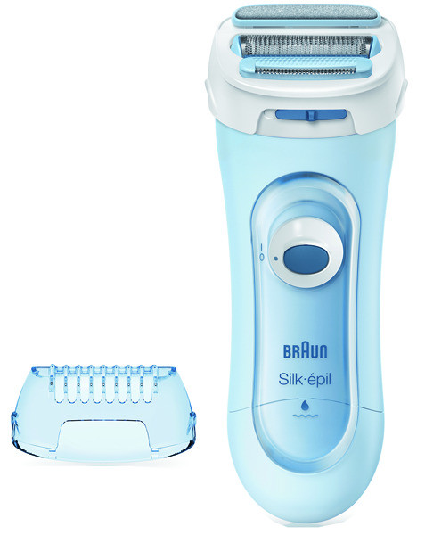 Silk-épil Lady Shaver LS5160 Wet and Dry 3-in-1 Rasierer mit Trimmer- und Peeling-Aufsatz, Batteriegerät, schwenkbare Scherfolie und Trimmer für eine perfekte Rasur der Beine, Achseln und Bikinizone, Peeling-Aufsatz peelt während der Rasur sanft die Haut, auch zur Anwendung in der Badewanne oder unter der Dusche