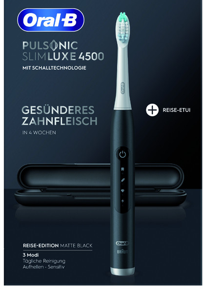Schalltechnologie mit 31.000 Bürstenkopfbewegungen/Min., 3 Reinigungs-Modi: Tägliche Reinigung, Aufhellen und Sensitiv; Professional Timer (4x30 Sek.), ultra-schlankes Handstück, Ladestation, inkl. 2 Aufsteckbürsten: 1x Pulsonic Clean, 1x Pulsonic Sensitive