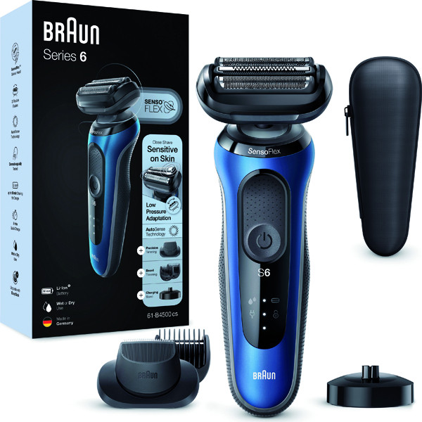 gründliche und sanfte Rasur dank des dermatologisch getesteten beweglichen SensoFlex-Scherkopfes und SensoFoil-Klingen, die eine Druckanpassung ermöglichen, AutoSense-Technologie erkennt die Bartdichte und passt die Leistung entsprechend an, EasyClick-System (kann mit einem einfachen Klick umgerüstet und die Aufsätze ausgetauscht werden), Präzisionstrimmer-Aufsatz, Barttrimmer-Aufsatz und Ladestation, 100 % wasserdicht, Li-ION-Akku, Akkukapazität 50 Min., Schnell-Ladefunktion für eine Rasur 5 Min., Netzteil, Reise-Etui, Made in Germany