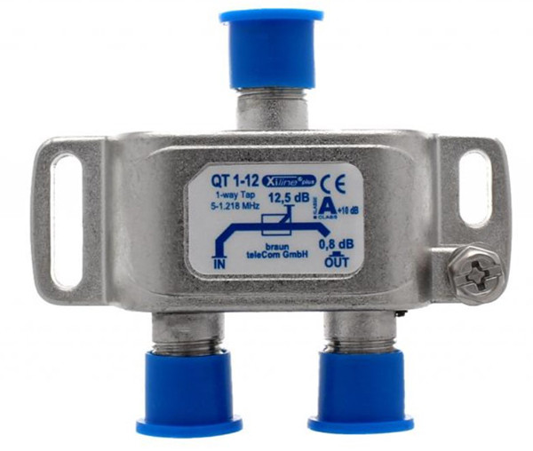 Frequenzbereich 5 - 1.218 MHz, Ferrittechnologie höchster Gü te zur Vermeidung von passiver Intermodulation, 360° vergoldete Innenleiterkontakte, hochwertige Dielektrikumeinsätze für bestmögliche Linearität und Anpassung, Gehäusebeschichtung mit CuSn Weißbronze, Brummentkoppelt mit integrierten Sperrkondensatoren an allen Ein- und Ausgängen, Kompaktes Druckgussgehäuse mit Erdungsanschluss, 6-fach- und 8-fach Verteiler sowie 4-fach-, 6-fach und 8-fach Abzweiger in horizontal- und vertikaler Position montierbar, Sehr hohes Schirmungsmaß (= 110 dB) EN 50083-2, Klasse A +10dB übertreffend, Rückflussdämpfung >22dB bei 47MHz -1,5dB /OCT. nach EN 60728-4 Güteklasse 1 Der 1-fach Abzweiger QT-1-12 aus der Xiline plus-Serie von Braun teleCom ist ein hochwertiger passiver Abzweiger mit einem Abzweigwert von 12,5 dB. Er eignet sich ideal für professionelle Koaxialinstallationen im Frequenzbereich von 5 bis 1.218 MHz und bietet höchste Signalqualität sowie exzellente Entkopplung. Technische Merkmale: Ferrittechnologie höchster Güte zur Vermeidung passiver Intermodulation, 360° vergoldete Innenleiterkontakte für optimale Signalübertragung, Hochwertige Dielektrikumeinsätze für beste Linearität und Anpassung, Gehäusebeschichtung aus CuSn Weißbronze für hervorragenden Korrosionsschutz, Brummentkoppelt durch integrierte Sperrkondensatoren an allen Ports, Kompaktes Druckgussgehäuse mit Erdungsanschluss, Sehr hohes Schirmungsmaß = 110 dB, übertrifft EN 50083-2 Klasse A um +10 dB, Rückflussdämpfung > 22 dB bei 47 MHz, gemäß EN 60728-4, Flexible Montage: horizontal oder vertikal. Dieser Abzweiger ist die perfekte Wahl für moderne Breitbandverteilnetze, bei denen eine zuverlässige Signalverteilung und hohe Störsicherheit gefordert sind. Text mit KI erzeugt