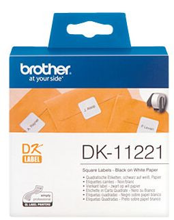DK-Einzeletikettenrollen sind schnell und einfach zu installieren und in verschiedenen Breiten, Farben und Materialien erhältlich. So können Sie mit Ihrem Etikettendrucker sämtliche Beschriftungsaufträge erfüllen. Brother DK-11221 Einzeletiketten - schwarz auf weißOriginal Brother DK-11221 Einzeletiketten (Papier) - 23 x 23 mm, 1.000 Stück pro RolleSchwarz auf weiß23 x 23 mm, 1.000 Stück pro RolleBeständige, perfekt lesbare Ergebnisse