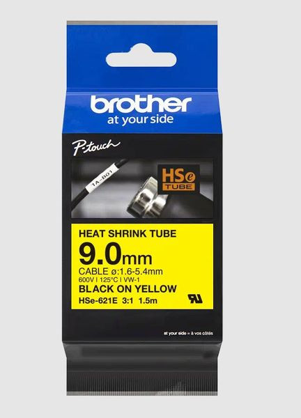 Pro Tape HSe-611E Schrumpfschlauch, Schwarz auf gelb, Beständige, perfekt lesbare Ergebnisse, Schrumpft bei Wärmeeinwirkung für eine leichte Kabelkennzeichnung, Material: Polyolefin, 5,2 mm breit, 1,5 m lang, Empf. Schrumpftemperatur: 110°C bis 140°C