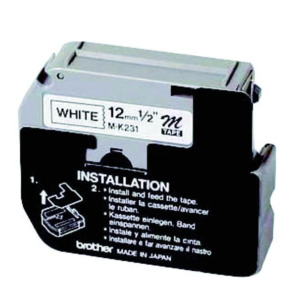 Beschriftungsband schwarz auf weiß 12 mm, Standardband, nicht laminiert, Druckfarbe: schwarz, Bandfarbe: weiß